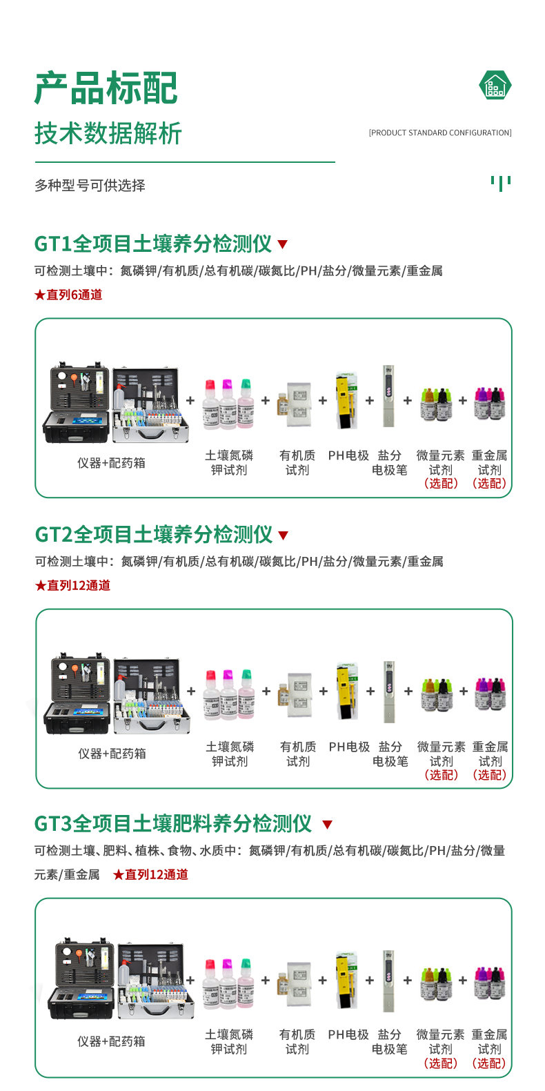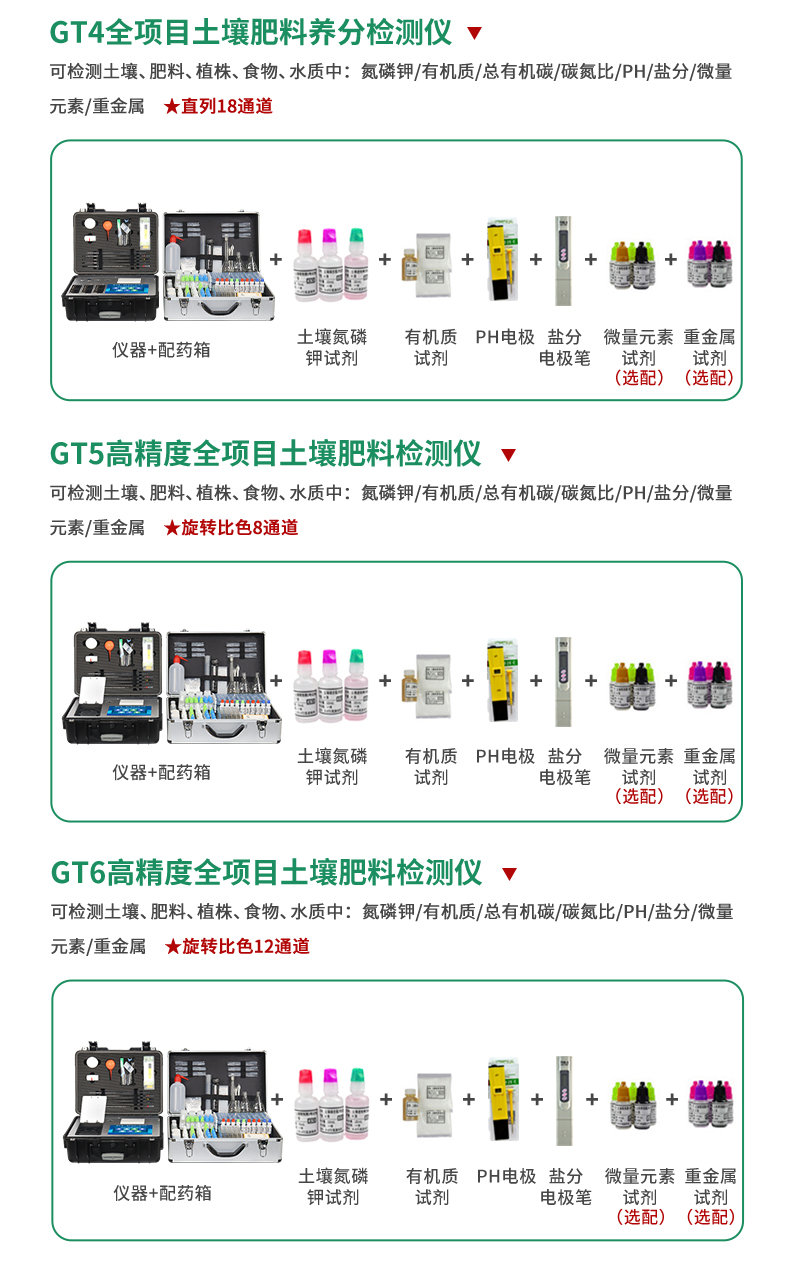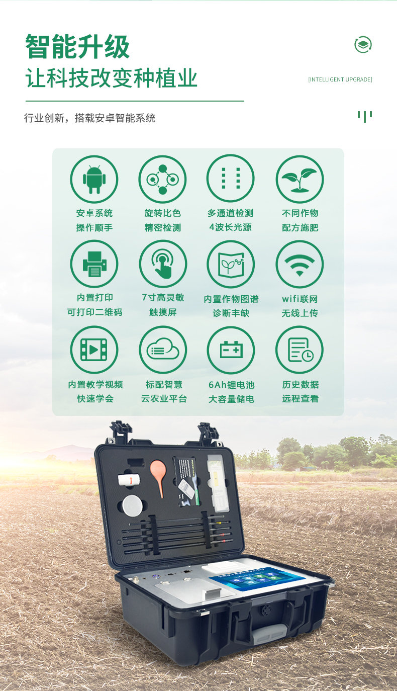 配套齊全:該儀器集藥、器、儀為一體,攜帶方便,相當于一個小型移動實驗室,無需用戶自配附件,亦可靈活野外流動測試。適于農業(yè)服務部門或農資經銷商、高教院校、科研院所、合作社、肥料廠商、大種植戶測土施肥和鑒別肥料真假及環(huán)保檢測應用。